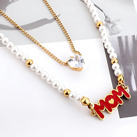 Mom Doppel-Perlen-Halskette Gold
